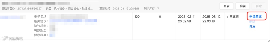 针对已被冻结的商品:
