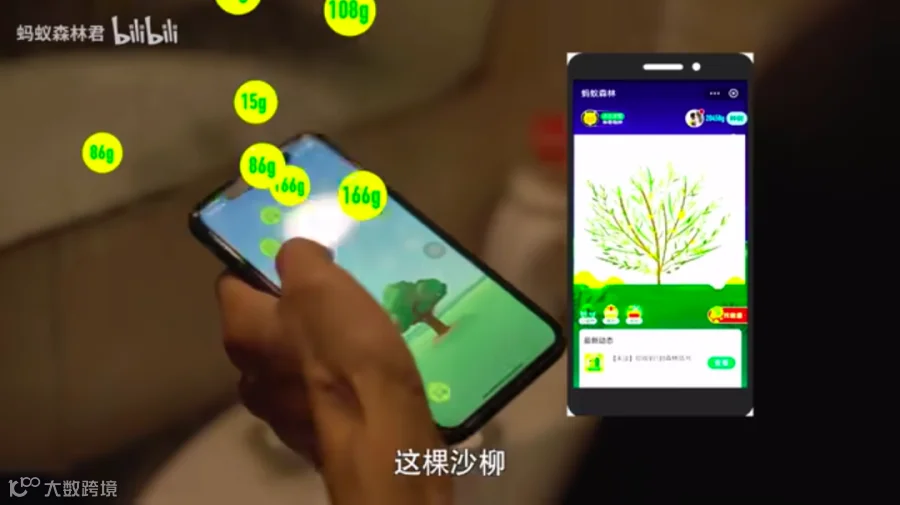 2016年8月,支付宝公益板块正式推出蚂蚁森林,用户步行替代开车、在线缴纳水电费、网络购票等行为节省的碳排放量,将被计算为虚拟的“绿色能量”,用来在手机里养大一棵棵虚拟树。虚拟树长成后,支付宝蚂蚁森林和公益合作伙伴就会在地球上种下一棵真树,或守护相应面积的保护地,以培养和激励用户的低碳环保行为。