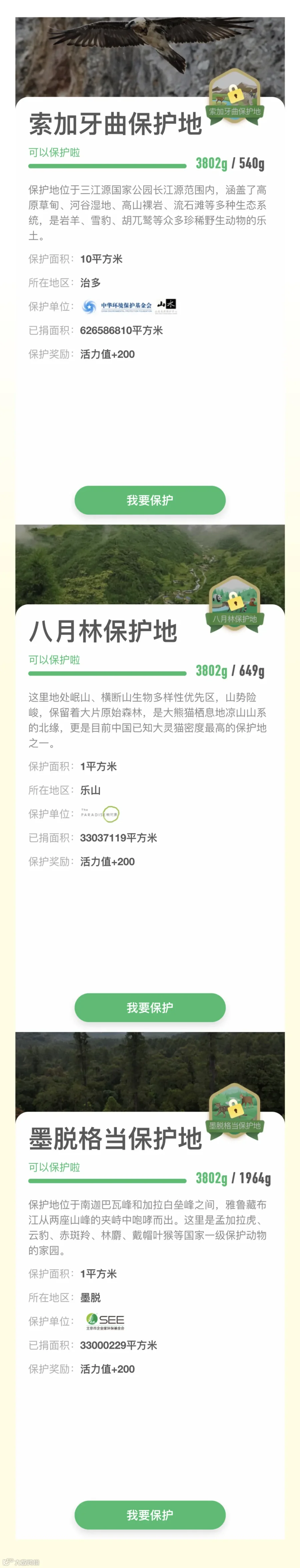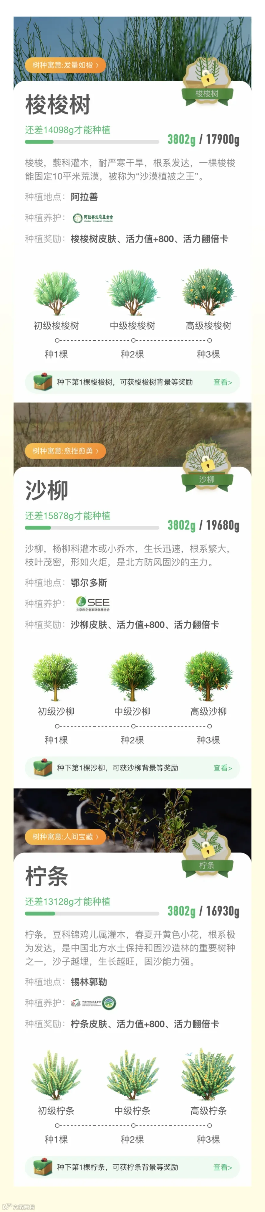以下保护项目都来自蚂蚁森林,这些树种、动植物和保护地,都来自中国西部。