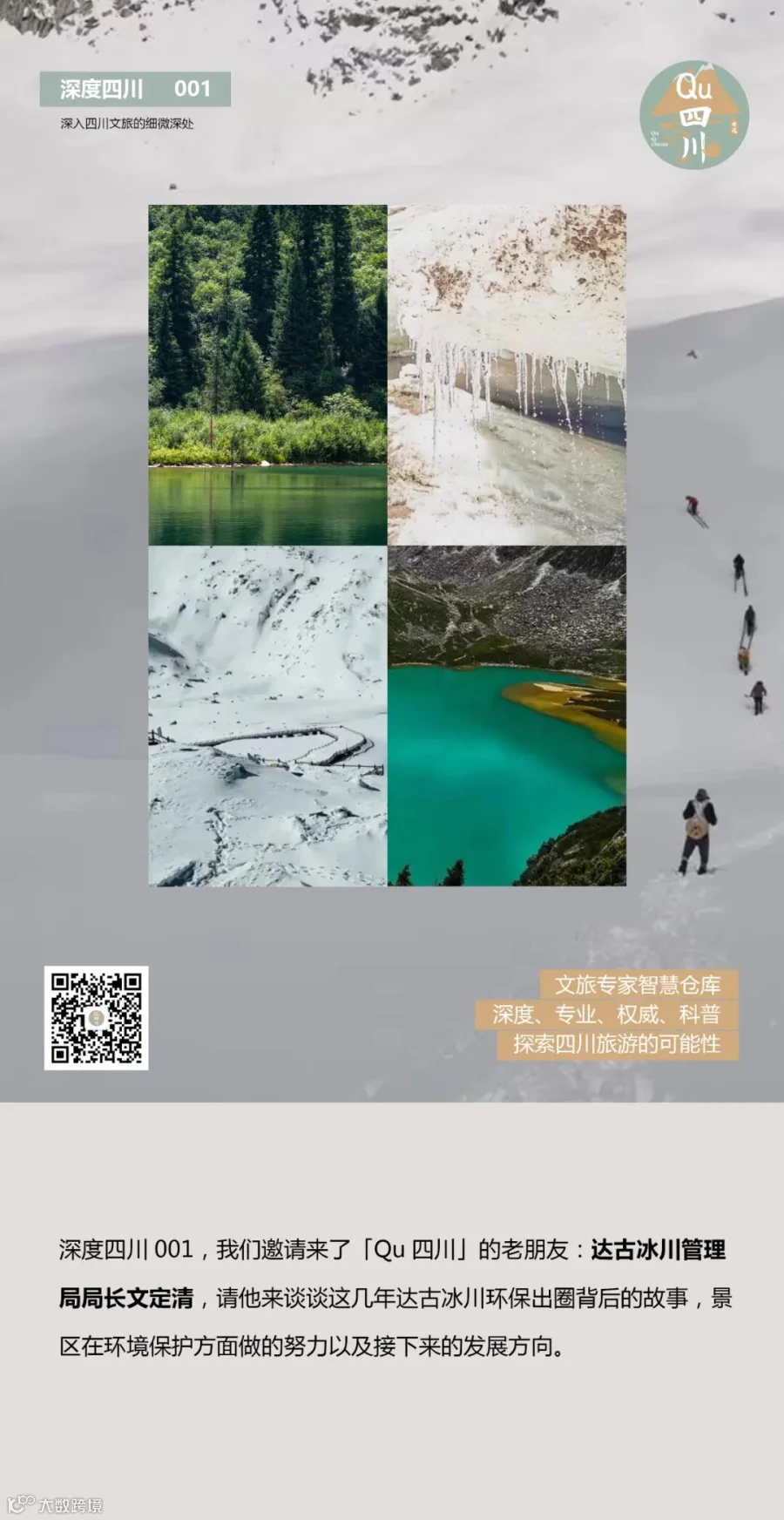 谈及达古冰川在环保方面做的努力,文定清首先强调,环境保护其实也是践行“绿水青山就是金山银山、冰天雪地也是金山银山”的两山理论。同时,他也提出了一个适合景区当前和今后一段时间的环保理念,就是“科研为基,环保为要,人才为纲、旅游为重”的一个概念,在他看来,环境问题是一个综合的面,环境保护是措施,是行动。在环境问题认识方面要深,这就需要科研方面的支持。在环境保护方面要实,就要实实在在的去做,这些都离不开人才。作为景区管理局,既要抓发展,又要抓保护。其实这不矛盾,是可以相互兼顾,相互促进的。