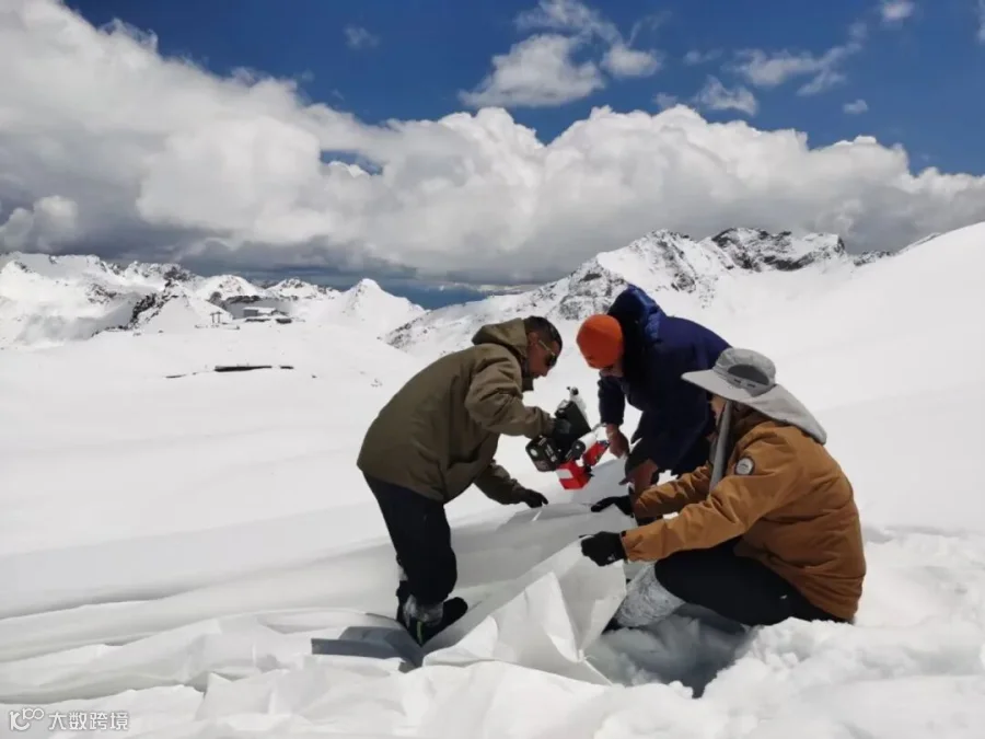 自2020年8月以来,达古冰川管理局联合中国科学院西北生态环境资源研究院、南京大学等,在达古17号冰川,组织开展“地球工程学”试验,利用人工措施减缓冰川消融。中国科学院研究员王飞腾和团队多次来到达古冰川进行科考研究,并开展了“盖被子”实验,这也是国内首次进行“盖被子”实验。‘盖被子’区域的冰体消融速度明显减少。