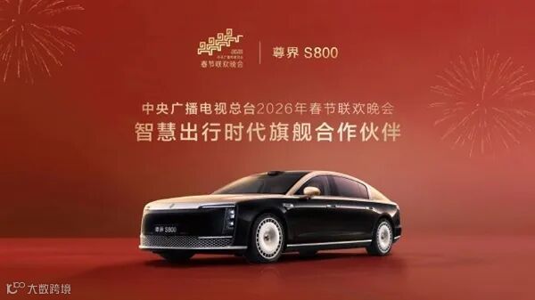 江汽集团宣布,与华为联合打造的高端旗舰车型尊界S800正式成为2026年中央广播电视总台春节联欢晚会智慧出行时代旗舰合作伙伴。
