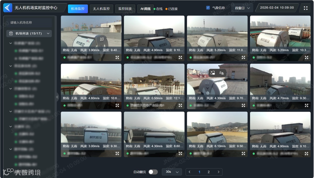 目前,该系统已在历城区完成一期建设,部署9个自动化机场点位,覆盖半径达3公里,累计执行飞行任务超2400架次,飞行里程逾9000公里,广泛应用于公共安全、重点项目督查、环境治理和交通管控等领域。