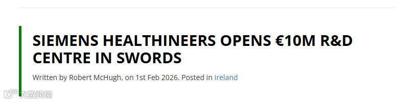 西门子医疗在爱尔兰的战略布局不仅支撑其全球诊断业务增长,也契合爱尔兰“打造全球医疗技术创新中心”的国家战略,因此受到政企多方积极评价。