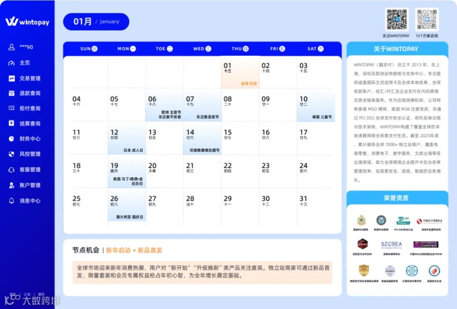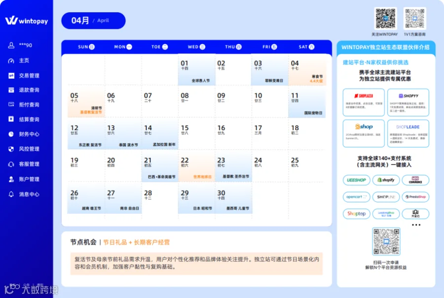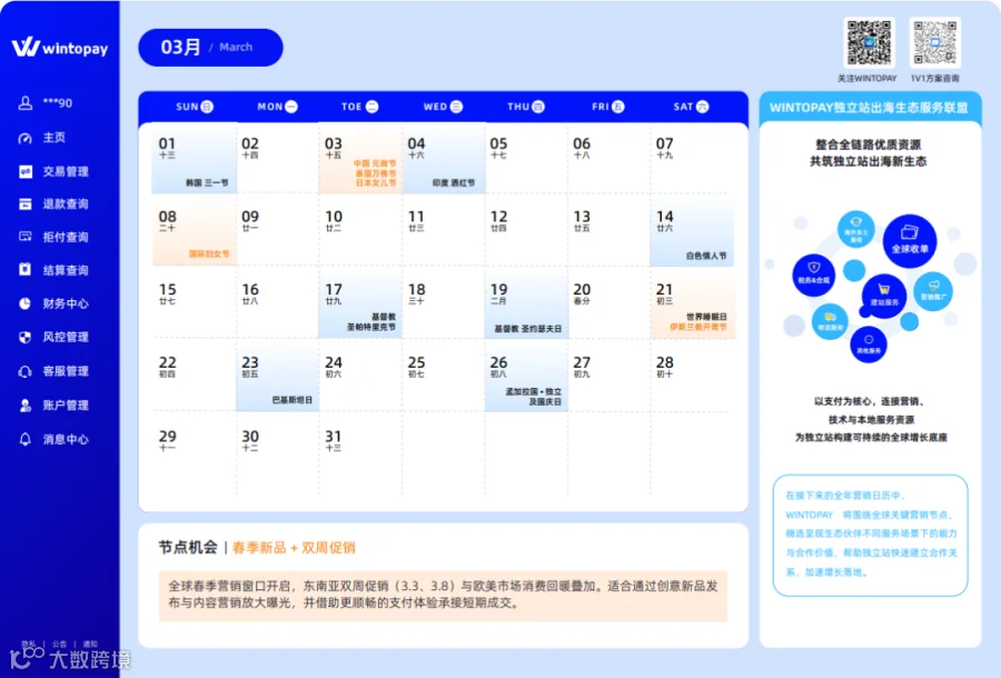 面对机遇纷至的出海大年,WINTOPAY 携手一众独立站生态服务优质伙伴匠心打造《2026独立站出海营销日历》,助您精准卡位全球热点,高效布局全年营销!这份日历不仅是时间表,更是您出海增长的实战路线图: