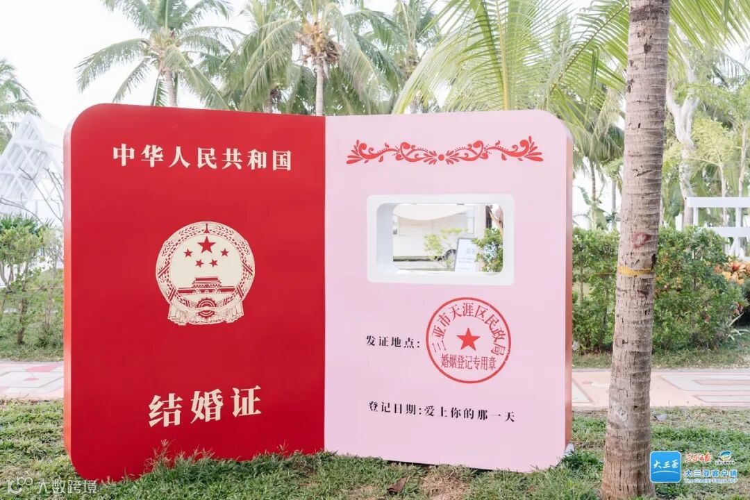 ▲天涯区民政局三亚湾婚姻登记处外的“幸福打卡点”。(资料图)