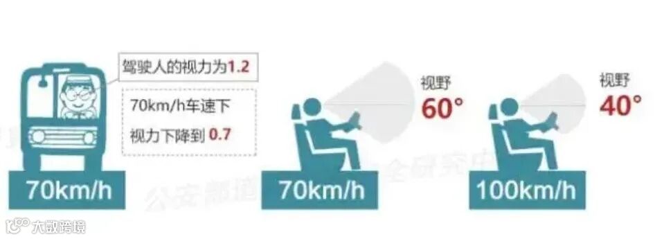 速度越快,反应时间越短,视野范围越窄,视力还会明显下降,严重影响对路况的精准判断和突发情况的应对能力。
