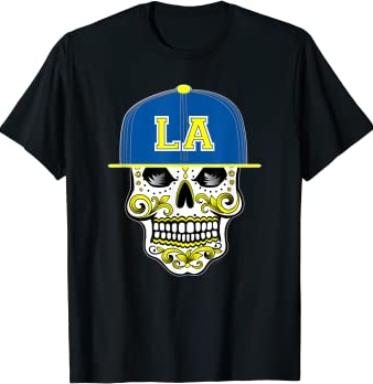 Los Angeles Mexican Sugar Skull Design T-Shirt | 8 | 4.1 | $27.95 | 2022-02-01 | #258,137 in Clothing, Shoes & Jewelry #10,437 in Men's Novelty T #14,129 in Women's Novelty Clothing #77,412 in Men's Fashion |
