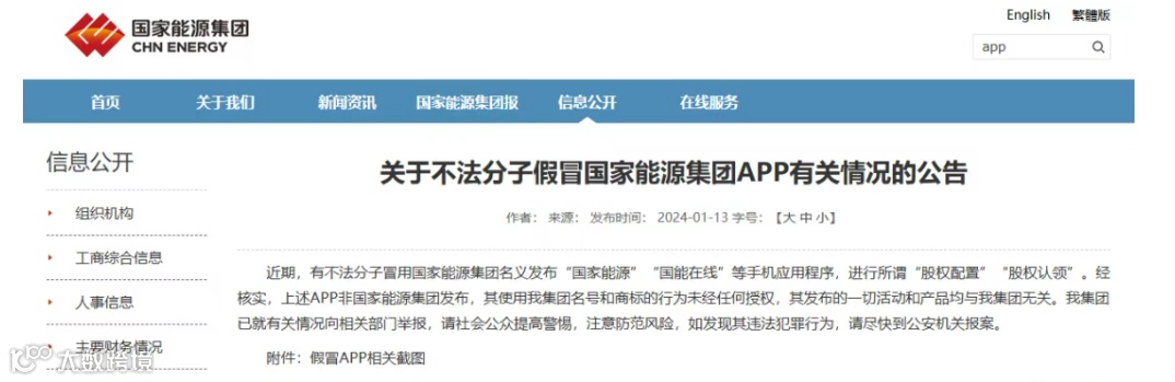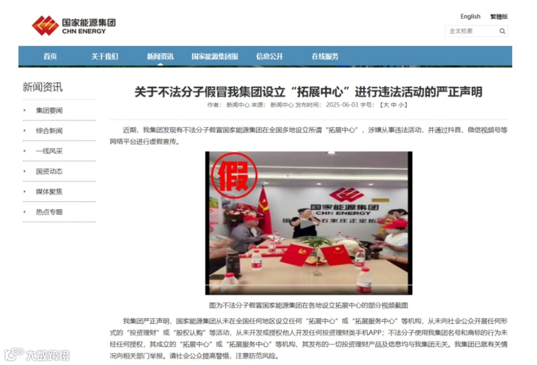 - 国家能源集团官网挂出打假公告