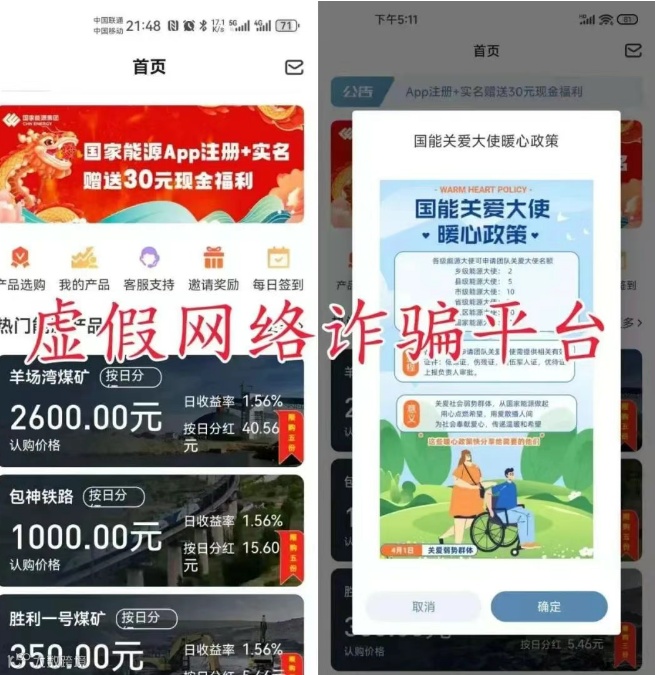 打开“国能APP”,金色徽标与国家能源集团官网完全一致的LOGO成为收割信任的第一步。点击“关于我们”,“国务院国资委监管中央企业”的声明赫然在目;招商PPT中的北京总部大楼实景图,实为某写字楼照片经PS合成。受害者家属坦言:“我爸说连公章都一模一样,肯定是真的。”但国家能源集团早在2024年初就已公告:从未授权任何第三方开展理财业务。