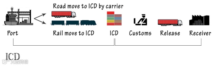 内陆集装箱堆场提供清关和其他进出口程序等。货物在ICD清关后,即可出口清关。