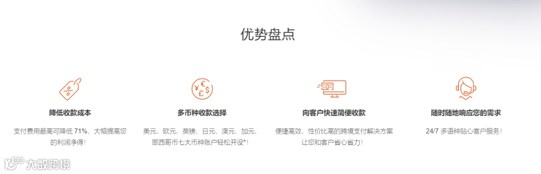 ①支持多币种、多平台、即时入账的跨境收款解决方案