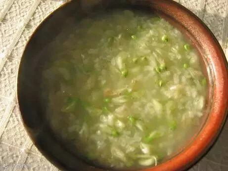 2、煮至米烂后,加入槐花,小火煨煮至沸,即成。