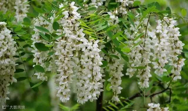 一串串洁白的槐花缀满树枝