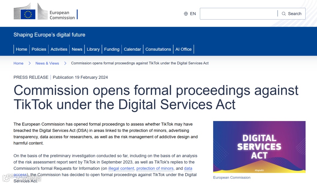 一、欧盟的核心诉求:不是针对TikTok,而是践行《数字服务法》的监管逻辑