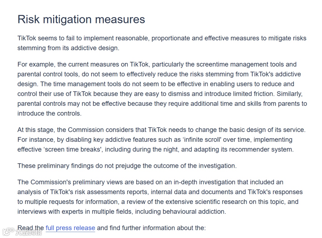 客观而言。TikTok的现有防控措施确实存在明显不足,这也是欧盟指控的核心依据。欧盟指出,TikTok的时间管理工具“容易被忽略”,家长控制功能“操作复杂”,这一评价并非空穴来风。事实上,包括TikTok在内的多数短视频平台,其成瘾防控工具多为“被动式”——需要用户主动开启、手动设置,而非“主动式”干预,这就导致此类工具的实际使用率极低,尤其是对未成年人和缺乏自我控制能力的用户,难以起到有效防控作用。 -