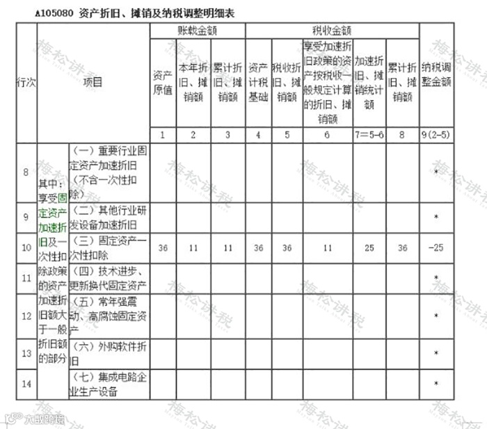 - 自资产开始计提折旧起,“税收折旧”大于“会计折旧”期间必须填报附表。