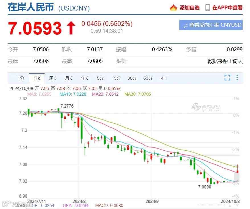 而10月8日,美元兑人民币汇率反而是出乎意料的小涨了一波,原因是美国9月就业数据“超出预期”,美国劳动力市场表现强劲,进而推动市场对美联储降息预期的大幅降温,交易员大幅削减了美元的空头押注。