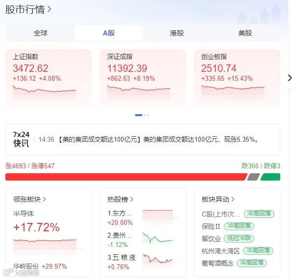 而10月8日,国庆长假后首个交易日,不出所料,超2亿股民“摩拳擦掌”,A股三大股指开盘集体暴涨。其中,沪指涨10.13%报3674.4点,深成指涨12.67%报11864.11点,创指涨18.44%报2576.22点。近千只股票竞价涨停,超百只宽基ETF涨停。这不仅仅是个别指数的优异表现,更是一场全面的股市狂欢,股民们在国庆期间悬着的心,终于放下了!