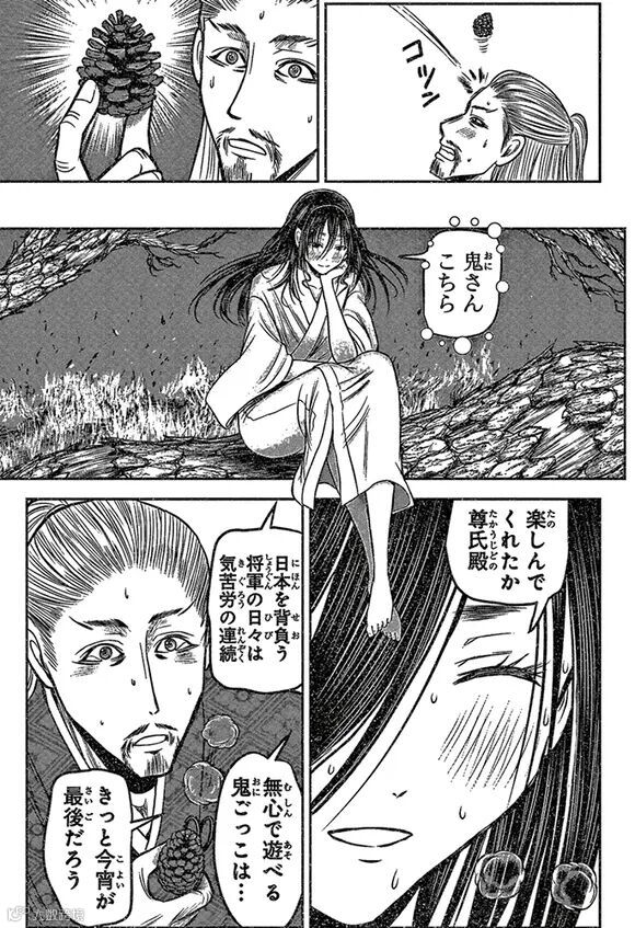 漫画233话,这个足利高给男主来了一顿话疗。简单来说就是你这个灵魂人物不死,乱世就没法终结,求求你去死吧。