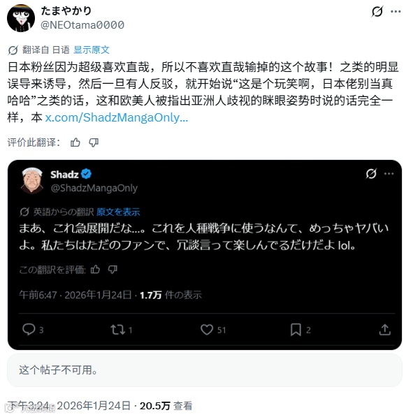 不过有意思的是,我看到一篇帖子,一些日本动画迷已经开始为自己的过激言论滑跪道歉——