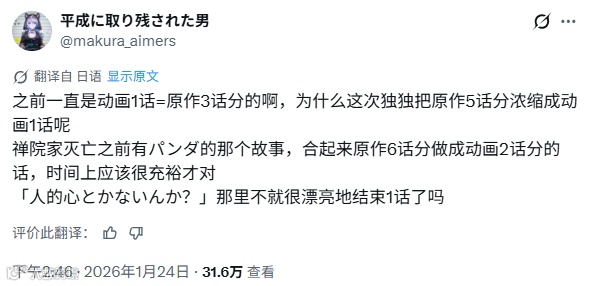 但动画更新次日,X上一位名叫“平成に取り残された男”(大意:平成遗老)的日本博主率先开团。