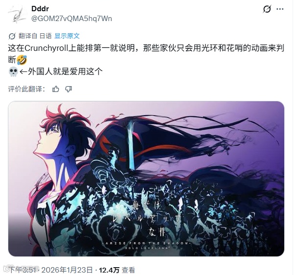 日本网友嘲笑欧美人被肌肉控制大脑,只喜欢看《我独自升级》这种力大砖飞战斗爽。