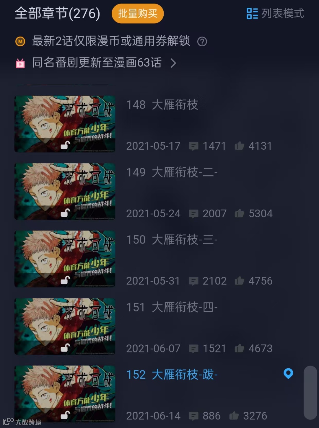 上周四,《咒术》第四集更新,对应的是漫画148话-152话的“大雁衔枝”。