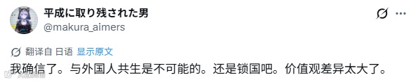 于是他得出结论:“我确信(日本人)无法和外国人相处,还是锁国算了,价值观差异太大了。”