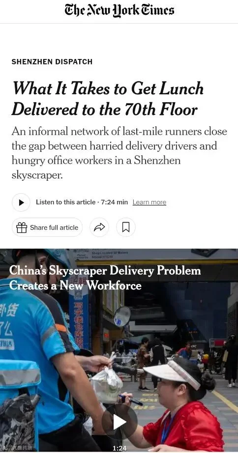 《What It Takes to Get Lunch Delivered to the 70th Floor》的报道
