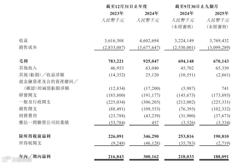 资料显示,2023年度、2024年度、2025年前三季度(下称报告期),伊戈尔分别实现收益约36.16亿元、46.03亿元、37.69亿元,期内溢利分别约为2.17亿元、3亿元、1.88亿元。同期,公司毛利率分别为21.7%、20.1%、17.8%,呈逐年下滑趋势。