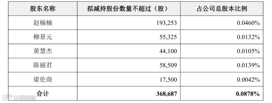 近日,伊戈尔公告称,公司董事、高级管理人员赵楠楠、高级管理人员柳景元、黄慧杰、陈丽君、梁伦商计划于3月5日至6月4日以集中竞价、大宗交易方式分别减持公司股份不超过19.33万股、5.53万股、4.41万股、5.85万股、1.75万股,拟减持股份分别占公司总股本比例0.0460%、0.0132%、0.0105%、0.0139%、0.0042%。