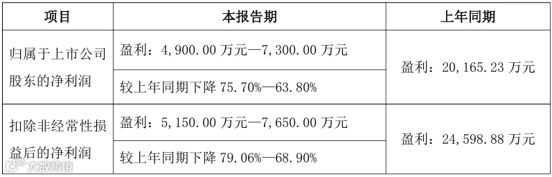 1月29日,康泰生物发布业绩预告,预计2025年度归母净利润将为4900万元至7300万元,较上年同期下降75.70%-63.80%。预计2025年度扣非净利润将为5150万元至7650万元,较上年同期下降79.06%-68.90%。预计非经常性损益对净利润的影响金额约为-350万元至-250万元,上年同期为-4434万元。