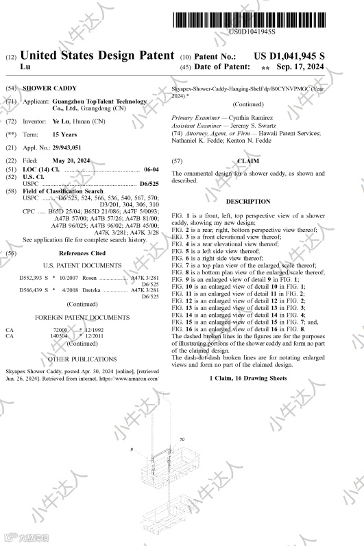 经查询,这款产品于2022年5月20日在美国进行外观专利申请的提交,于2024年9月17日获得了公告。