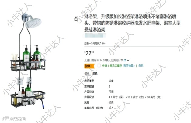 该产品于23年9月21日在亚马逊平台上架,(截至2024年9月26日)评分为4.3颗星,拥有1063条来自买家的评论。在淋浴架商品排行榜中排名第27名。在过去的一个月,有1000+的顾客购买了该产品。