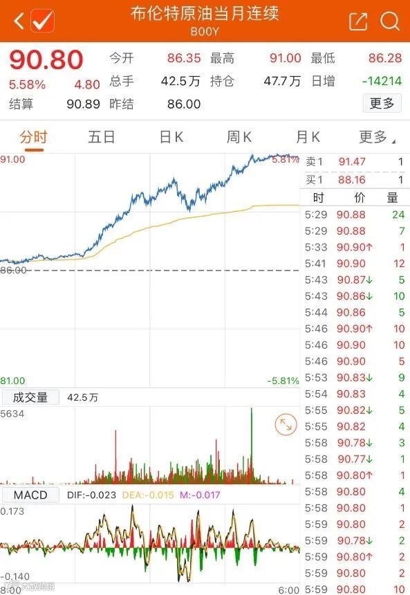 当地时间周五,巴以冲突再度升级,国际油价再遭“血色助攻”。截至收盘,WTI原油主力合约上涨5.8%,报87.72美元/桶,布伦特油主力合约上涨5.58%,重返90美元/桶上方,报90.80美元/桶。