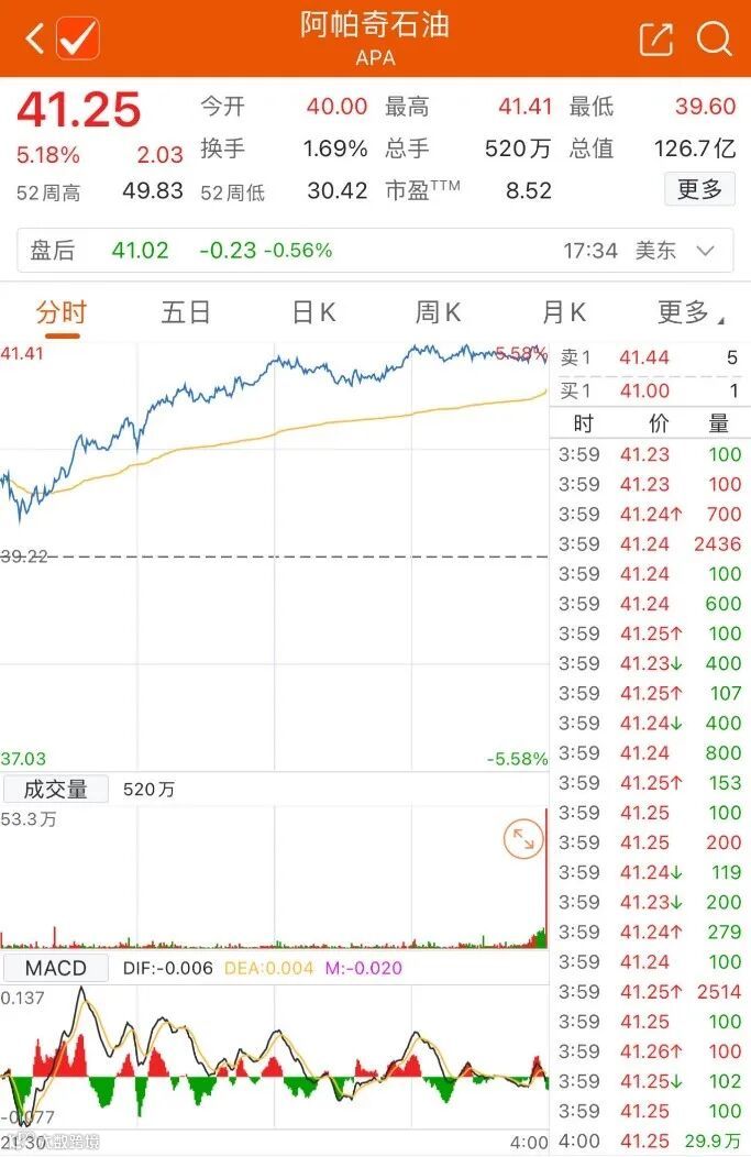受国际油价大幅上涨推动,美股一众能源公司股价走强。阿帕奇石油涨超5%,埃克森美孚、墨菲石油、康菲石油涨超3%,马拉松石油涨超4%,雪佛龙、西方石油、斯伦贝谢涨超1%。