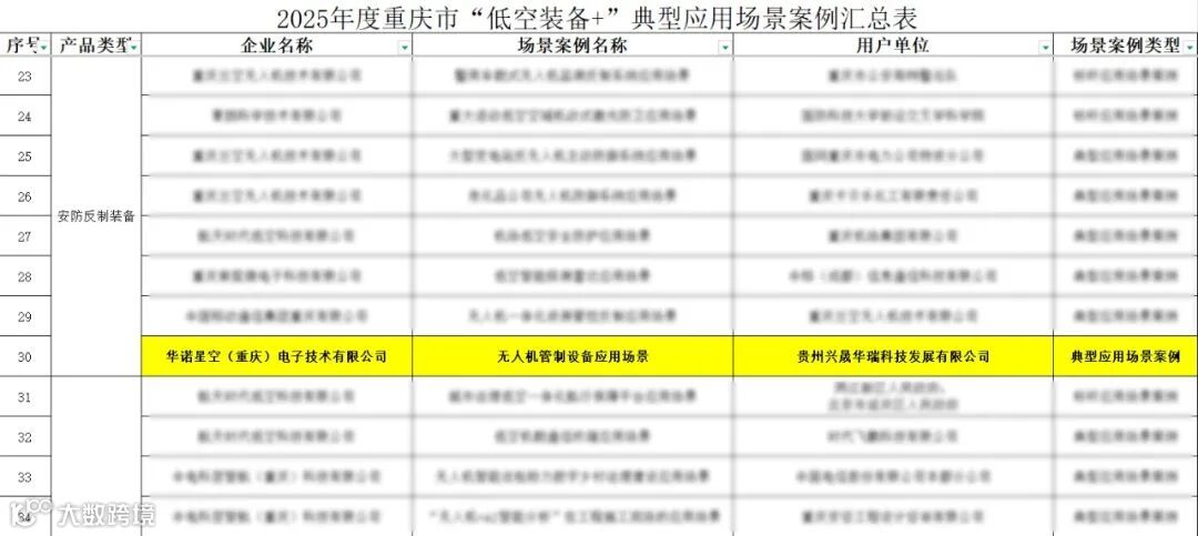 近日,重庆市经济和信息化委员会发布《关于2025年度重庆市“低空装备+”典型应用场景案例名单的公示》,经多轮评审,拟确定44个“低空装备+”典型应用场景。华诺星空申报的“无人机管制设备应用场景”成功入选,标志着其在低空安防领域的技术实力与应用落地能力获得官方认可。
