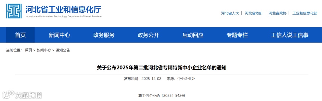 关于公布2025年第二批河北省专精特新中小企业名单的通知