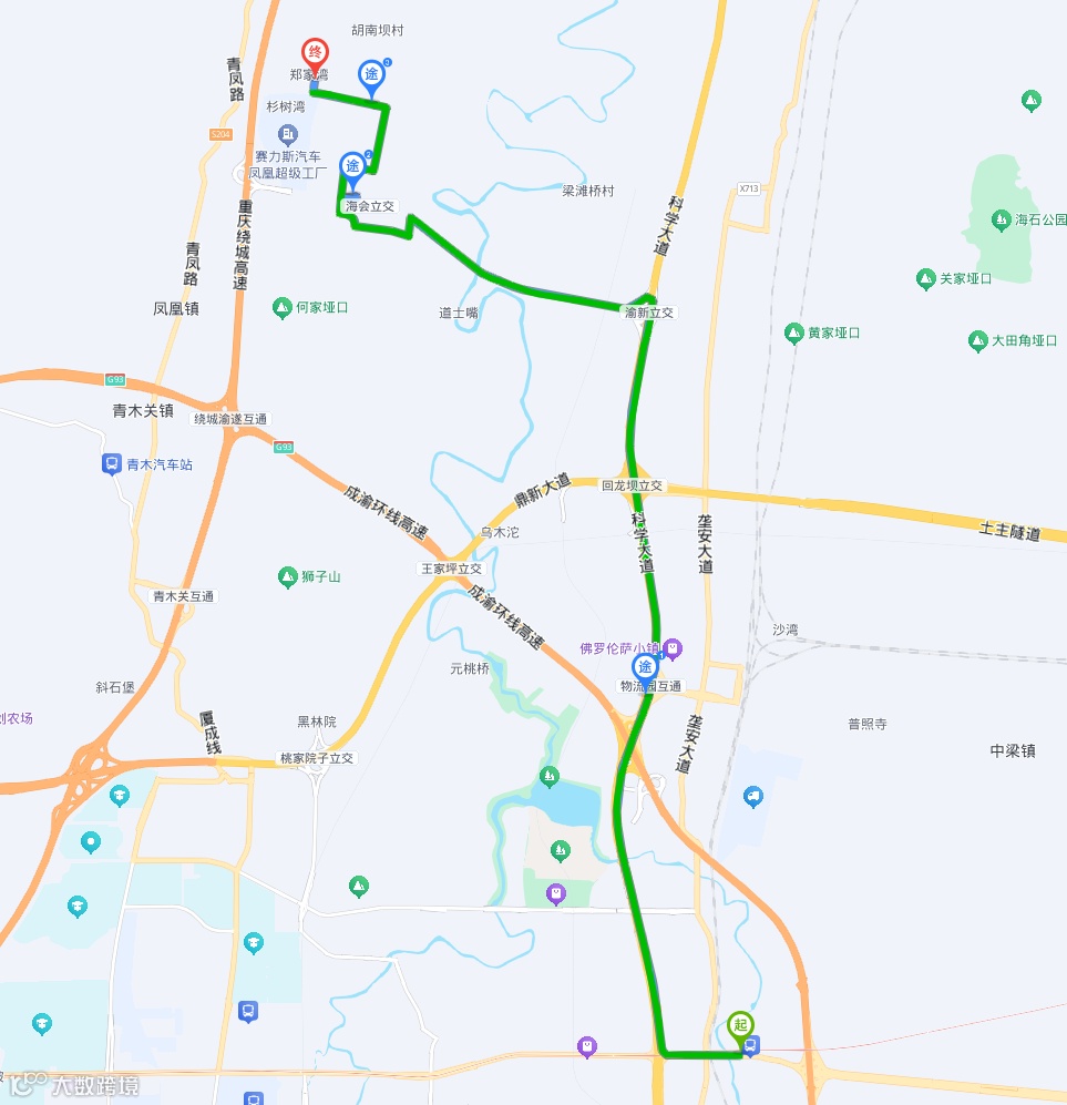 逆向:青凤高科创新孵化中心→中电光谷科技城→云湖未来社区→赖家桥枢纽站