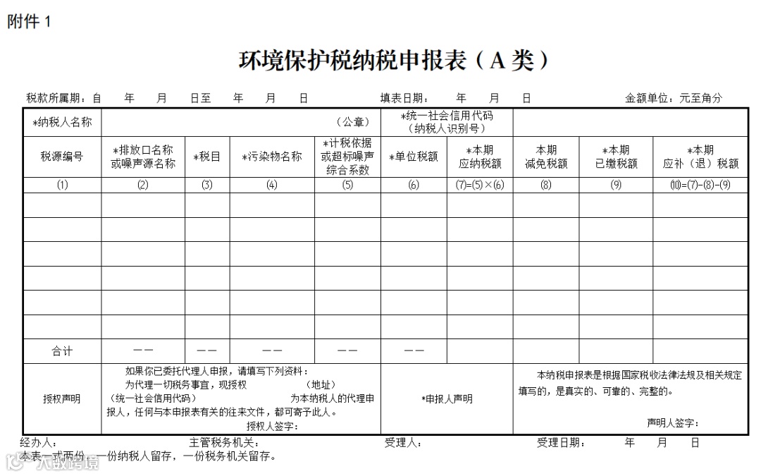 环境保护税纳税申报表(A类)及填写说明