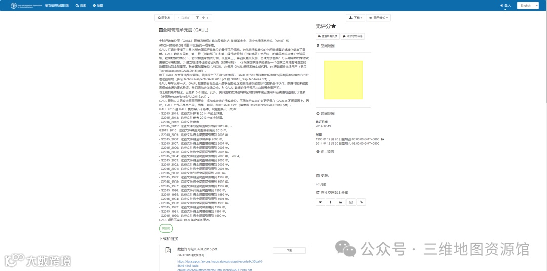 访问FAO数据目录(https://data.apps.fao.org/map/catalog/srv/eng/catalog.search#/home),搜索“FAO gaul”即可获取数据详情。