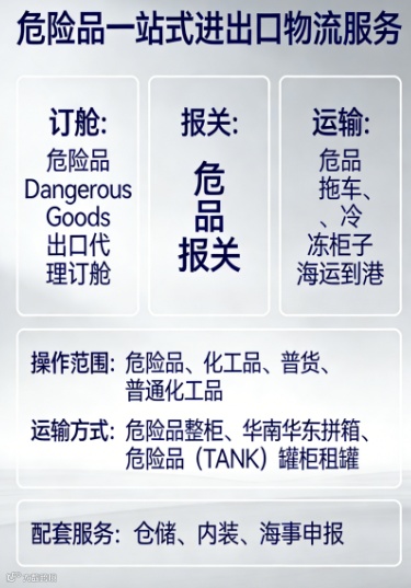 ***危险品Dangerous Goods出口代理订舱,危品报关,危品拖车,仓储,内装,海事申报等一站式进出口物流服务!