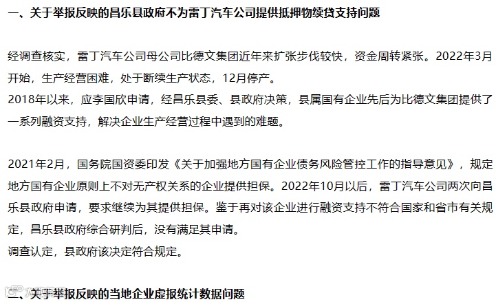 山东潍坊官方媒体“潍坊发布”发布了关于雷丁汽车李国欣实名举报事件调查情况的最终通报。