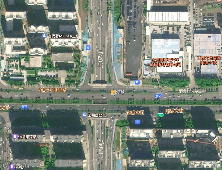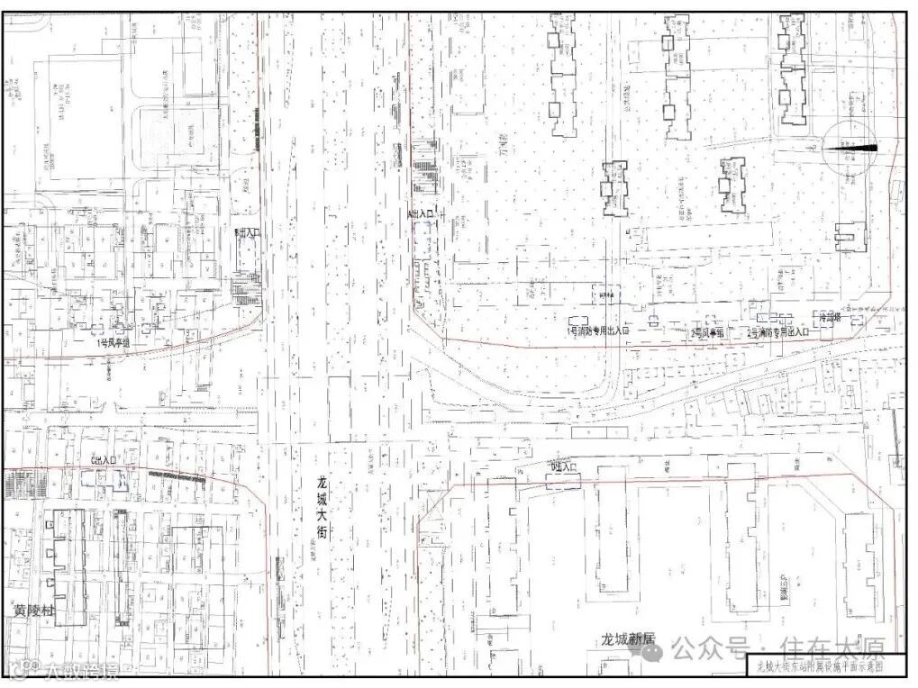 根据太原市规划和自然资源局的早前的公示,龙城大街东站(黄陵站)附属设施位于龙城大街与马练营路交叉口,有A、B、C、D共4个出入口,总建筑面积2442.17㎡。
