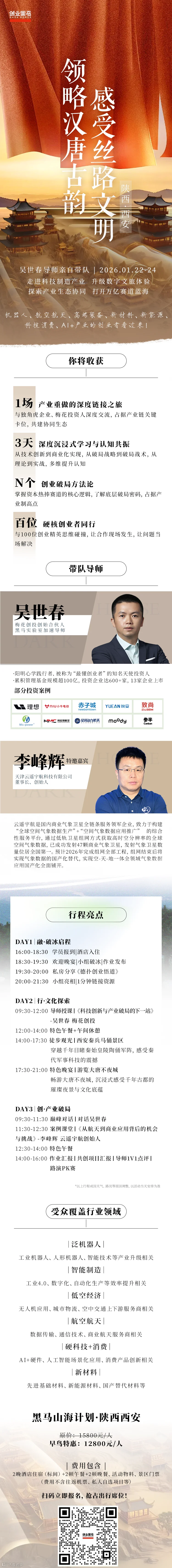 1月22日-24日,我将亲自带队100家企业家,去陕西西安线下游学,走进科技制造产业,打开万亿赛道蓝海。