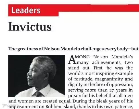 当然,有时候可能还会碰到一些比较少见的词,比如下面经济学人13年纪念曼德拉的文章标题