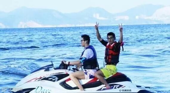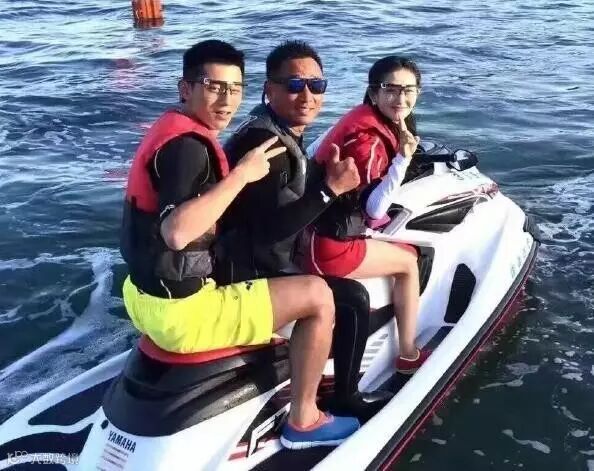 ▲张继科与孙杨骑摩托艇