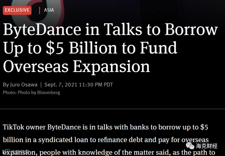 这当中便包括加码海外。9月7日,美国科技媒体TheInformation报道称,因年内不可能IPO,字节跳动正与数家银行接洽,拟以银团贷款方式,借入不超过50亿美元,用于债务再融资和海外扩张。