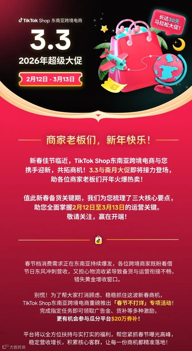 一、全域视角:TikTok Shop东南亚3.3大促,Q1跨境增长核心引擎